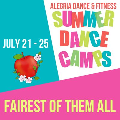 Who's the Fairest of Them all! Let's whistle while we work on our dance moves during our Snow White Themed Dance Camp. There will be an end of camp performance on Friday at 5:30pm (full day only) Based on enrollment, they will be broken up into groups. Open to Boys and Girls. Half- Day Campers should pack water and snacks for the morning. Full day campers must pack a morning snack and a lunch. Comfortable dance clothes should be worn and either dance shoes or clean sneakers that have not been worn outside. (Black Leo and caramel stirrup tights will be required for the end of week performance. A letter will be sent home one week before with specific camp requirements.